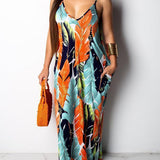 • Leaf/Floral Print, Spaghetti Straps, With Pockets
