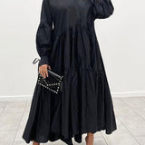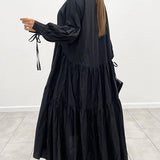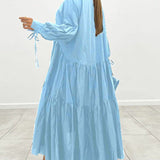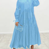- Long Sleeve, Quarter-Button Front, Ruffle Hem, No Stretch