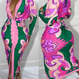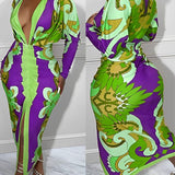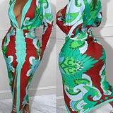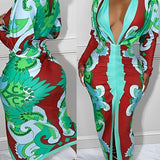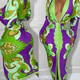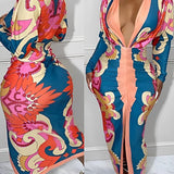 Printed Plunge Ruched Dress