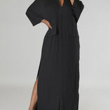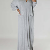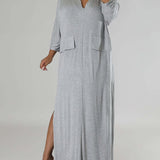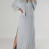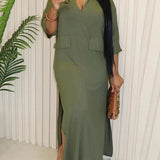 Solid V-Neck Side-Slit Dress