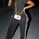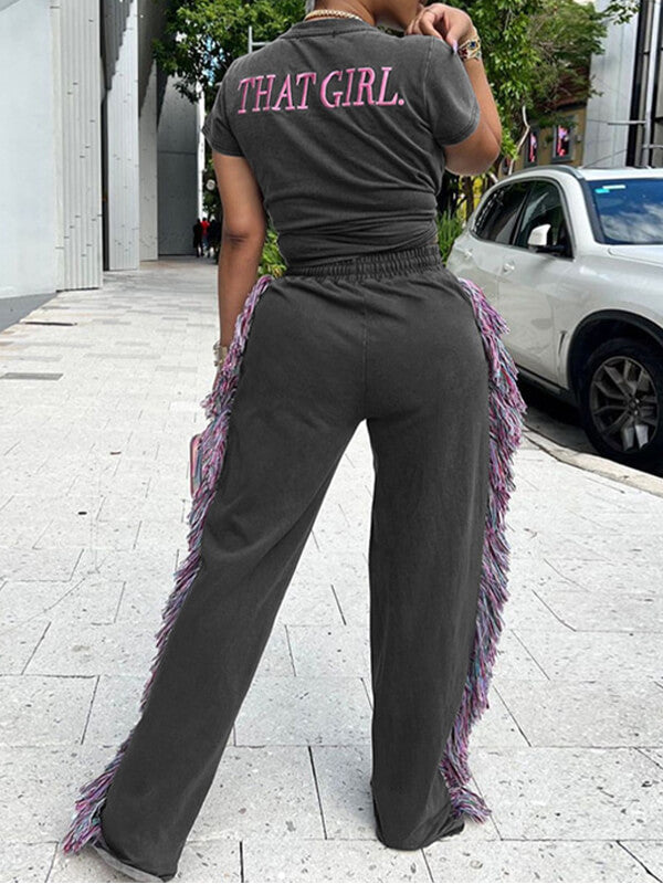 Logo Tee & Fringe Pants Set