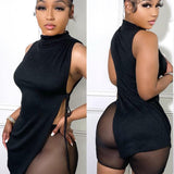 mangocouture Mock-Neck Sleeveless Top & Sheer Shorts Set