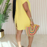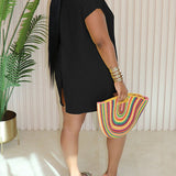 - Spread Collar, Short Sleeves, Button Front, Side Slit