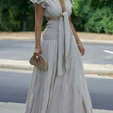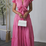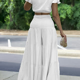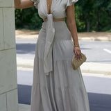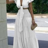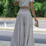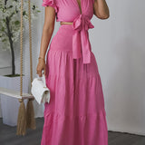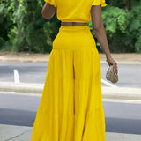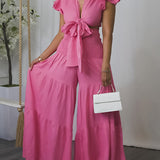 - V-Neck, Tied Front, Short Sleeves, Wide Leg