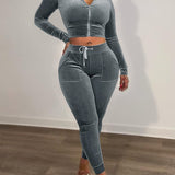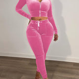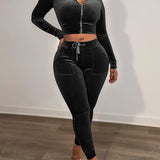 Mangocouture Velvet Zip-Front Top & Pants Set