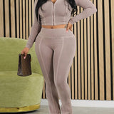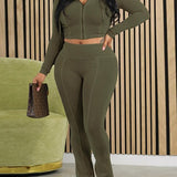 - Hooded Neckline, Long Sleeves, Zip Front, Elastic Waist