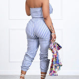 - Strapless Neckline, Zip Front, Elastic Waist, Jogger Leg