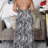 - Halter Neckline, Sleeveless, Open Back, Wide Leg