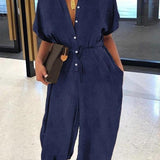 Button-Front Belted Jumpsuit