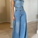 Button-Front Denim Jumpsuit