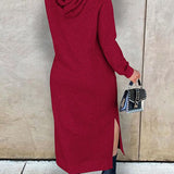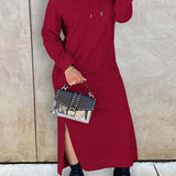 - Hoodie&Drawstring, Long Sleeve, Side Slit