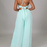 • Spaghetti Straps, Sleeveless, Tied Back, Wide Leg