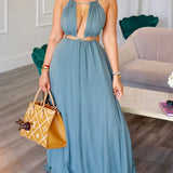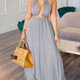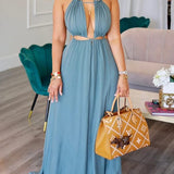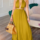 mangocouture Solid Lace-Up Cutout Dress