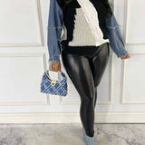 - Crew Neckline, Denim Long Sleeves, Slit Front