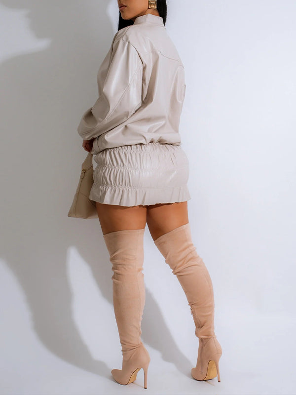 Faux-Leather Jacket & Skirt Set