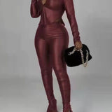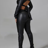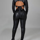 Mangocouture mangocouture Faux-Leather Tied Shirt & Slit Pants Set