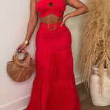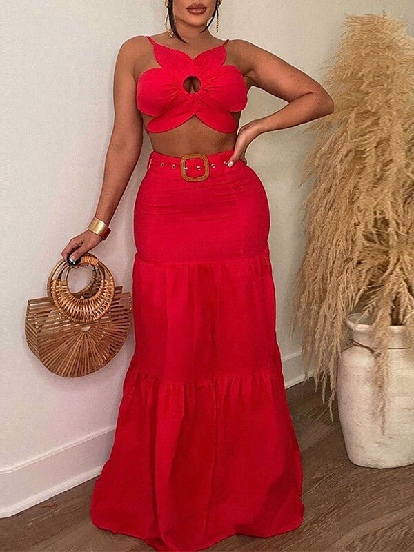 Indiebeautie Floral Tied Top & Belted Skirt Set