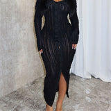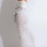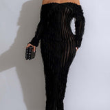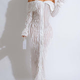• Off-the-Shoulder Neckline, Long Sleeves, Button Front
