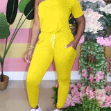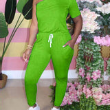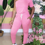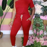 One-Shoulder Drawstring Jumpsuit