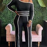 - Off-the-Shoulder Neckline, Long Sleeves, Elastic Waist