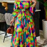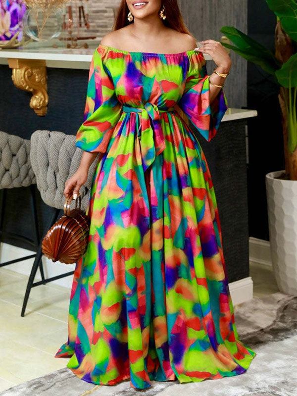 Printed Off-Shoulder Tied Dress