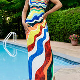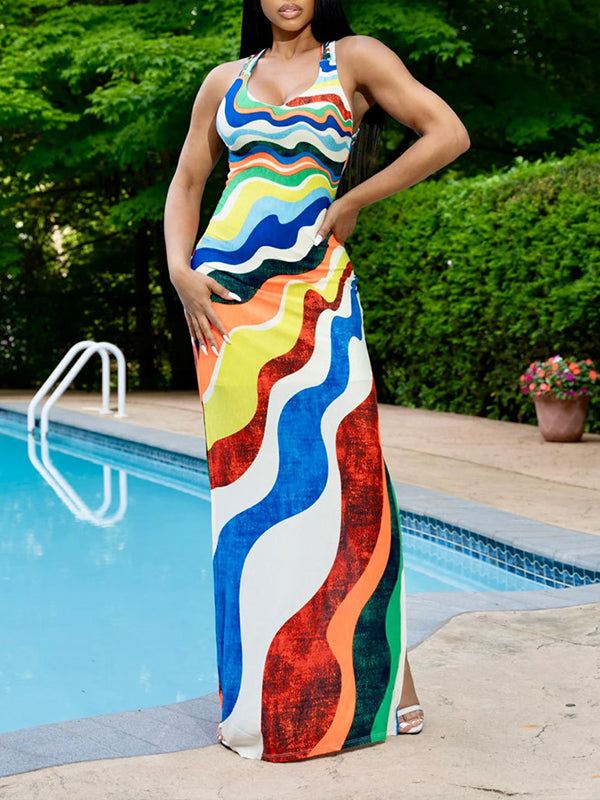 Printed Slit Tank Dress
