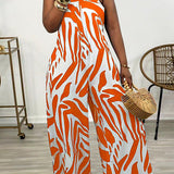 Printed Strapless Wide-Leg Jumpsuit