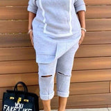 Mangocouture Side-Slit Sweatshirt & Ripped Pants Set