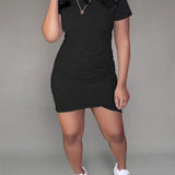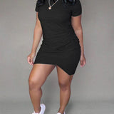 Solid Asymmetric Tee Dress