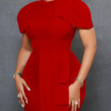 Solid Cap-Sleeve Bodycon Dress