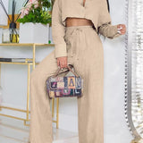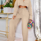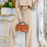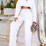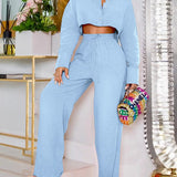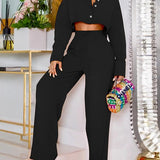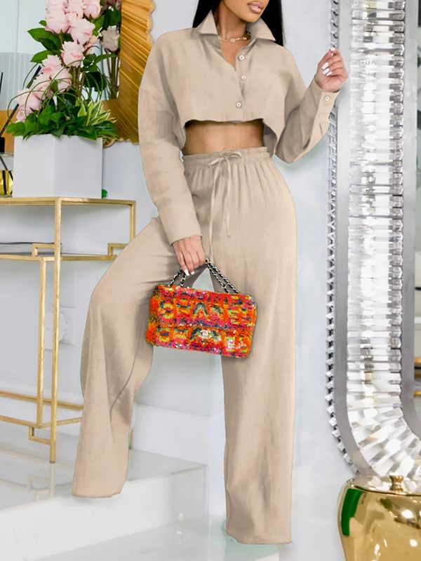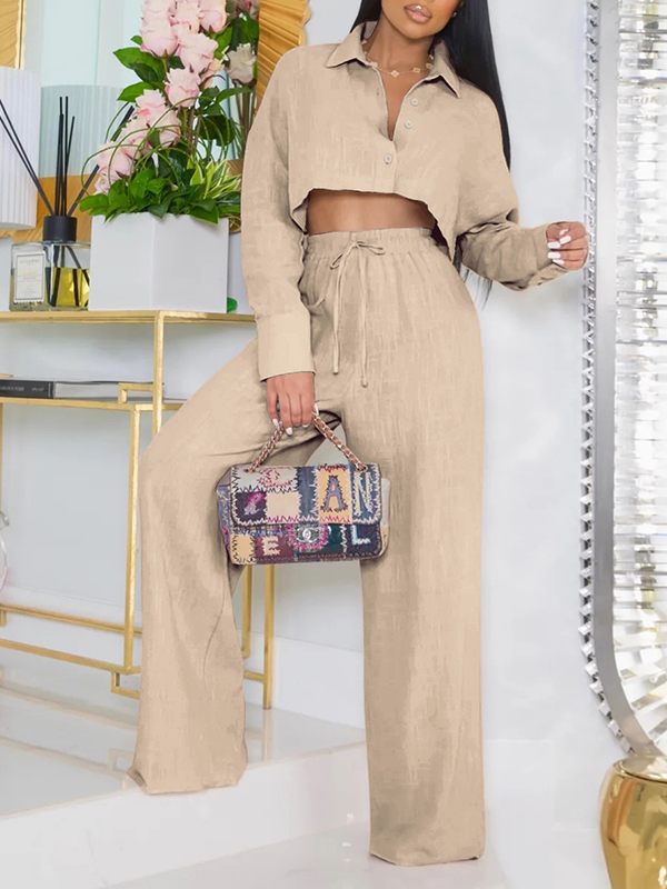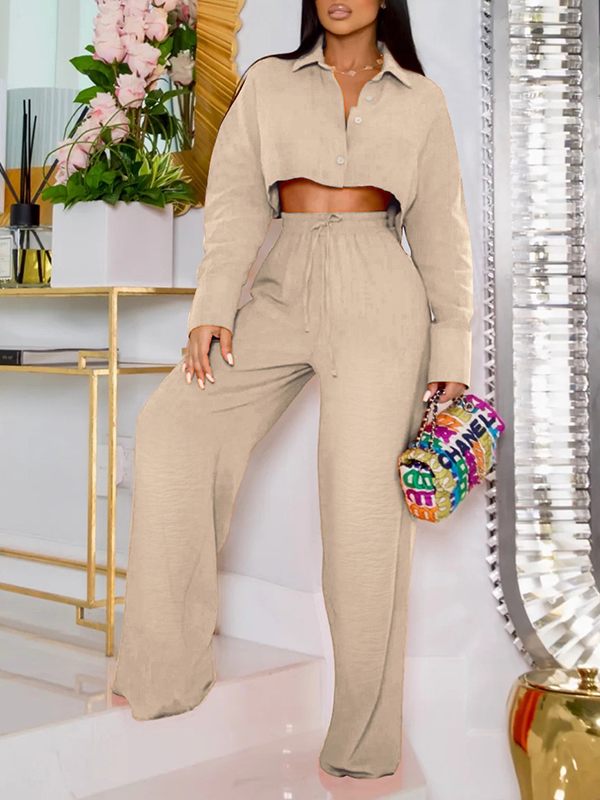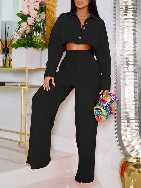 Solid Cropped Shirt & Wide-Leg Pants Set