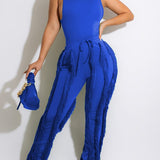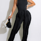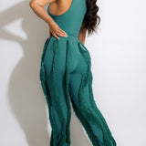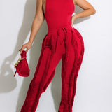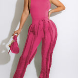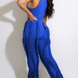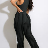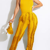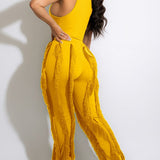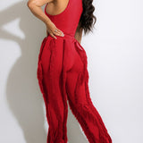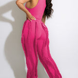 mangocouture Solid Tank Top & Fringe Pants Set