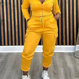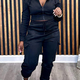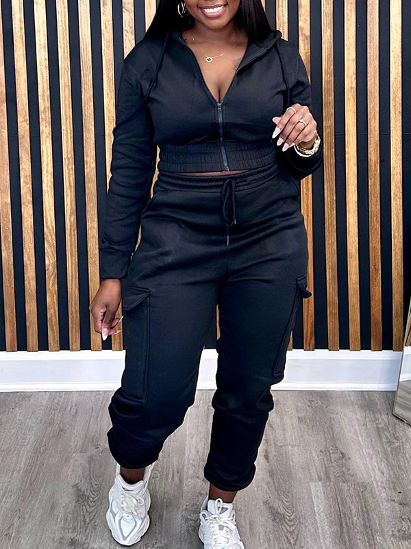 Mangocouture Solid Zip-Front Hoodie & Cargo Pants Set