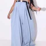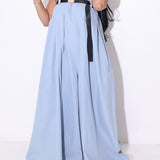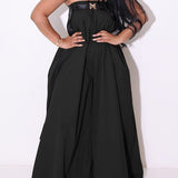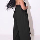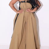 - Strapless Neckline, Sleeveless, Wide Legs, With Belt