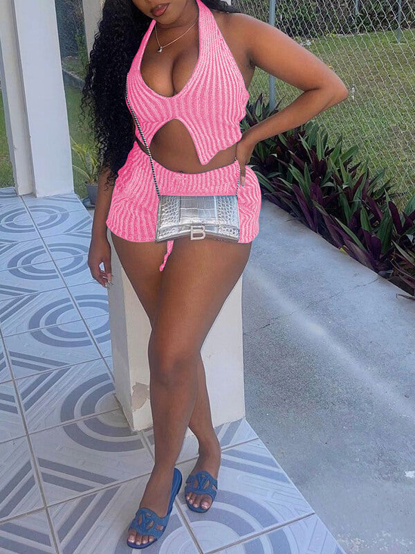 Stripe Halter Top & Shorts Set
