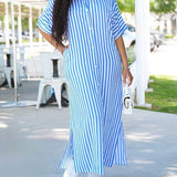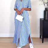 Stripe Side-Slit Shirt Dress