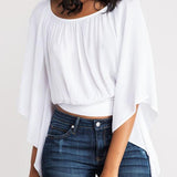 - Tied Back, Elastic Hem, Butterfly Sleeve